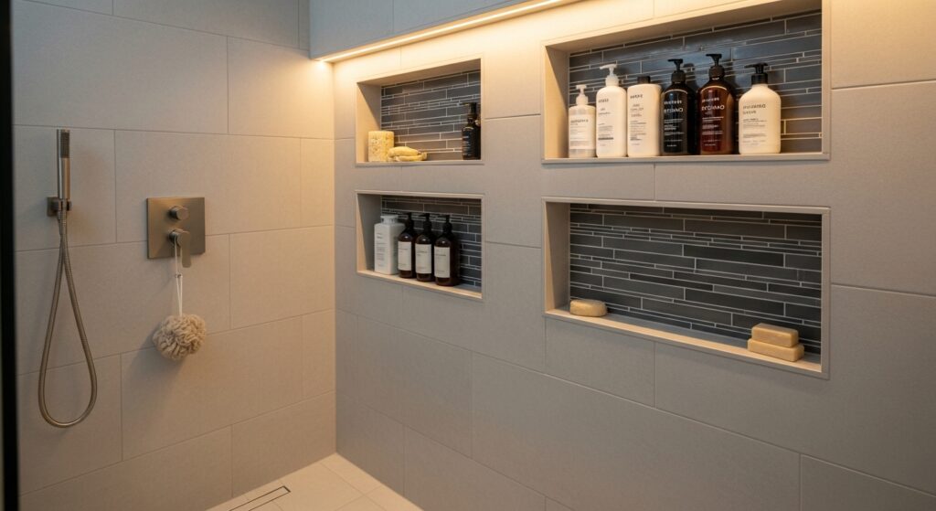 From a design perspective, niches also offer an opportunity to add subtle visual interest. In my experience, using contrasting tiles inside the niche creates a focal point without overwhelming the space. This small detail can elevate the entire look of the shower area. It’s a practical upgrade that keeps everything within reach while maintaining a polished and uncluttered appearance.