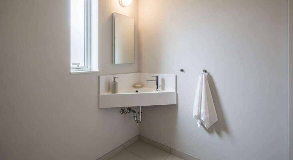 Even though it’s smaller in size, it doesn’t have to feel limiting. In my experience, pairing it with a simple mirror and light color palette helps maintain a balanced look. This setup keeps the space functional without feeling cramped, making it a smart choice for compact environments where efficiency and design need to work together seamlessly.