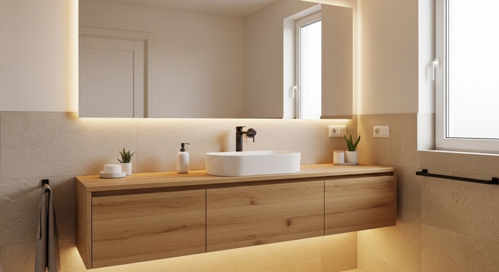 Beyond aesthetics, it also improves everyday functionality in a way people don’t always expect. Cleaning becomes easier since there are no awkward corners collecting dust underneath. In my experience, adding soft LED lighting below the vanity enhances both mood and visibility, especially during nighttime use.