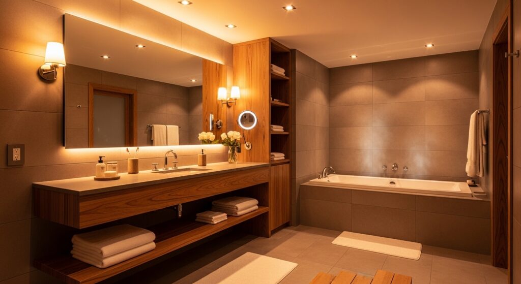 The real advantage comes from how adaptable it is to your routine. In my experience, soft ambient lighting works well for relaxation, while brighter task lighting is essential for grooming. This combination ensures the space always feels right, no matter the time or purpose. It’s a practical upgrade that enhances comfort, usability, and overall design without requiring major structural changes.