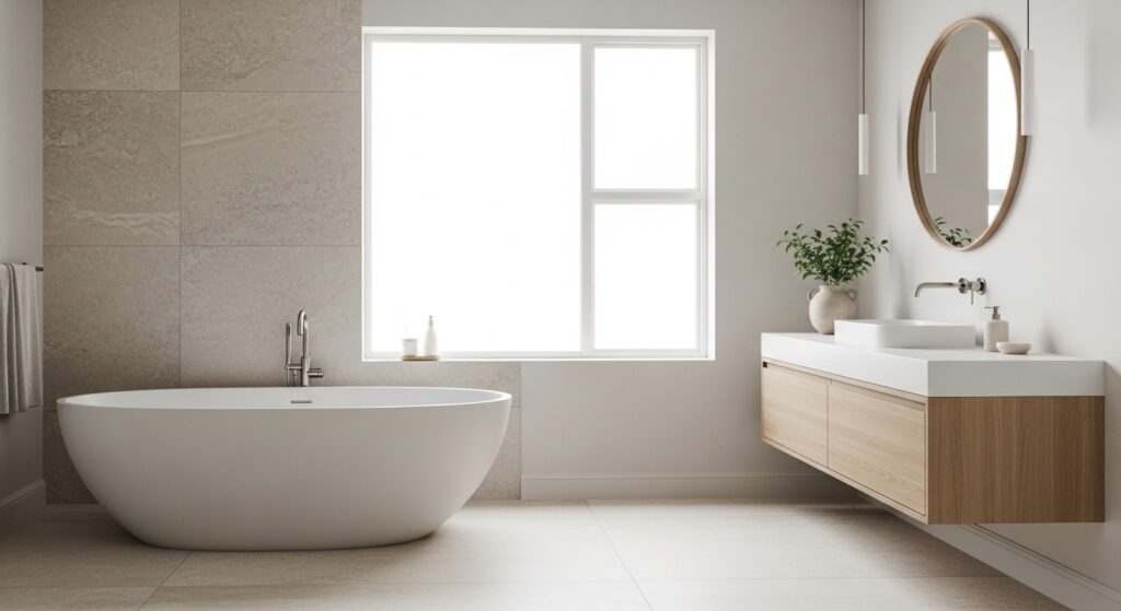 In my experience, adding subtle contrasts like wood finishes or soft lighting keeps the design from feeling flat. This approach allows you to refresh the look with minimal effort whenever needed. It creates a foundation that feels clean, calming, and effortlessly stylish, making your bathroom a space you genuinely enjoy spending time in.
