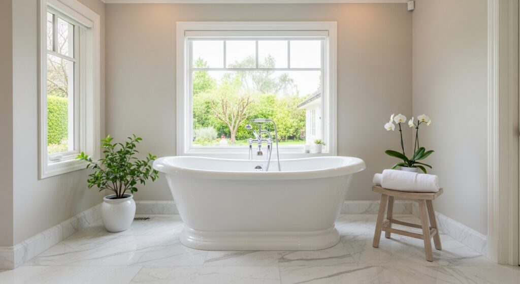 Functionally, it also changes how you experience the space. Instead of feeling purely practical, the bathroom starts to feel like a place to unwind. In my experience, positioning the tub near a window or under soft lighting enhances that calming effect even more.