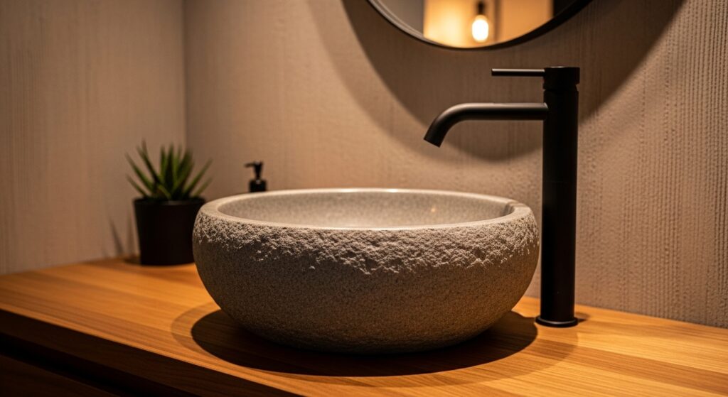 For Bathroom Design Ideas that stand out without being loud, this is a perfect choice. In my experience, pairing the sink with simple fixtures keeps the focus on its texture and form. It also makes everyday use feel more intentional and elevated. This small upgrade can transform an ordinary vanity into a design feature. The result is a bathroom that feels unique, grounded, and effortlessly sophisticated.
