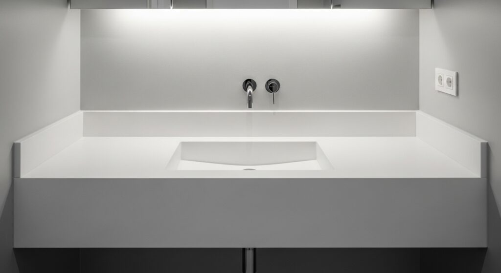Integrated sink counters are a subtle upgrade that makes a bathroom feel instantly more modern and refined. Because the sink and countertop are one continuous surface, the design looks clean and uninterrupted. I’ve noticed this works especially well in smaller bathrooms where simplicity makes a big difference. The lack of seams reduces visual clutter and makes cleaning much easier, which adds both beauty and practicality to the space.
