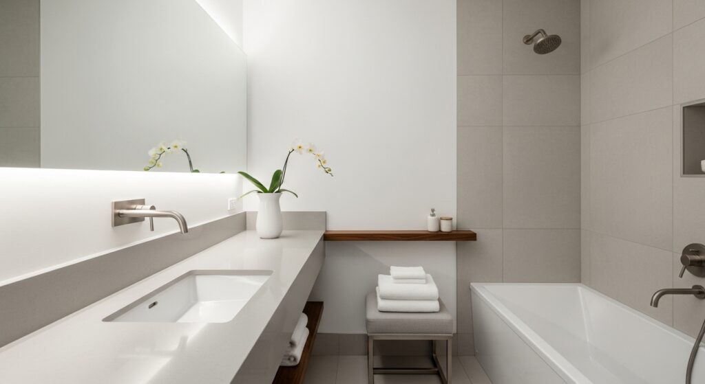 For Bathroom Design Ideas that prioritize clarity and balance, this approach is highly effective. In my experience, choosing a few well-placed items creates more impact than filling every surface. It also makes cleaning and maintenance much easier. This style works across different design themes because it focuses on simplicity. The result is a bathroom that feels calm, spacious, and effortlessly refined.
