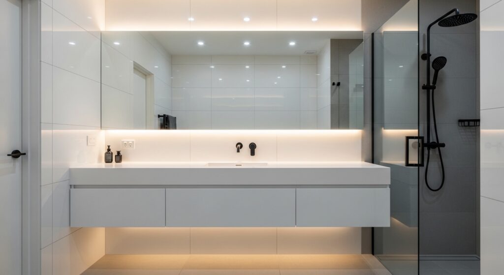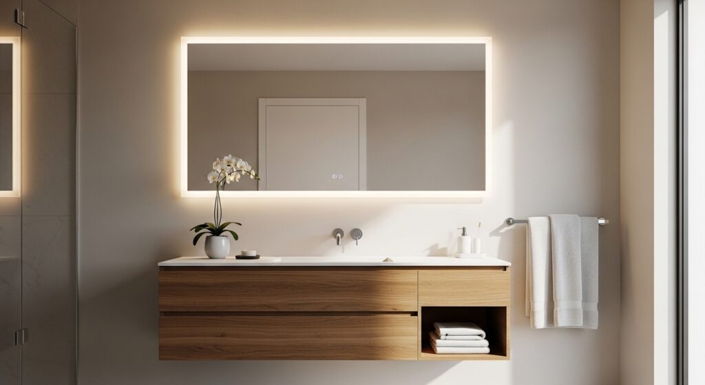 For those exploring Bathroom Design Ideas that combine function with visual appeal, this upgrade stands out. It brings a modern edge while still feeling warm and inviting. In my experience, warm-toned LED lighting works best to avoid a clinical look. It also highlights textures and finishes in a way that feels intentional and polished. The result is a bathroom that feels elevated, comfortable, and effortlessly stylish without requiring a full renovation.