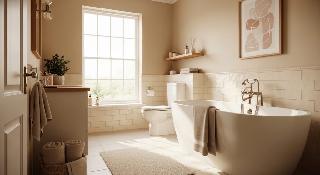 A warm neutral palette has a way of making a bathroom feel instantly more relaxing and expensive. Instead of stark whites or overly bold colors, these tones create softness and balance throughout the space. I’ve seen this work especially well in homes where the bathroom needs to feel like a retreat rather than just a functional area. The warmth adds comfort, while the simplicity keeps everything looking clean and intentional. It’s one of those design choices that rarely goes out of style.