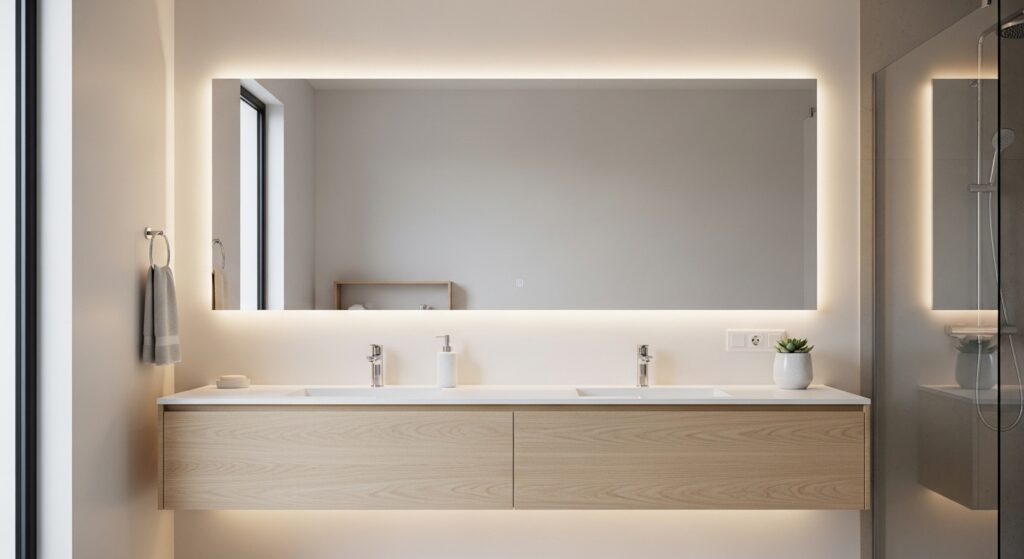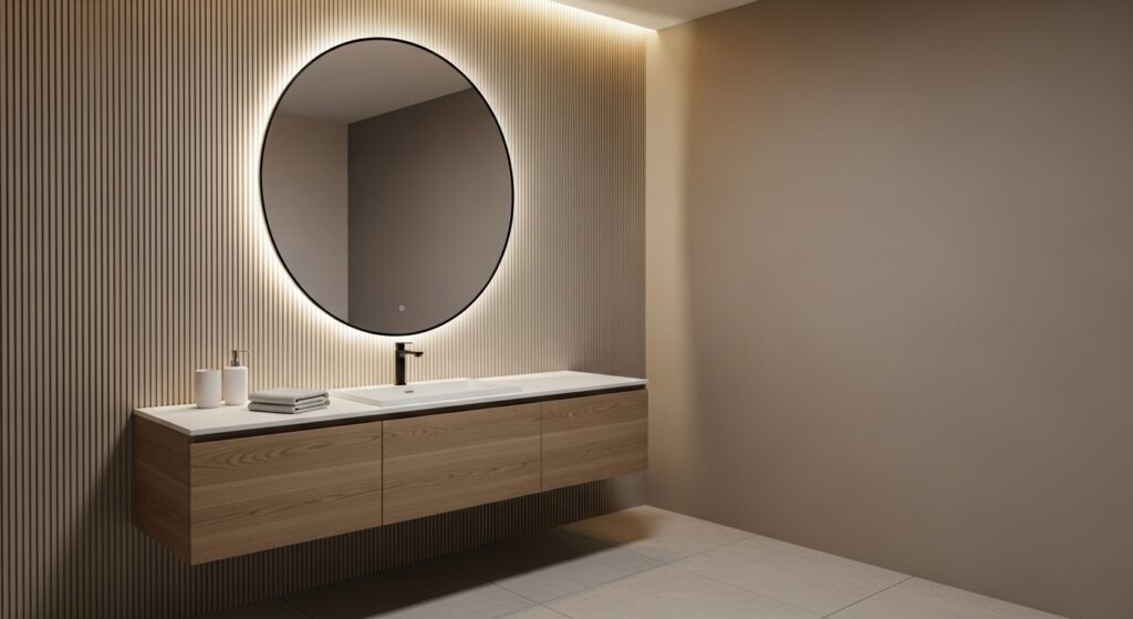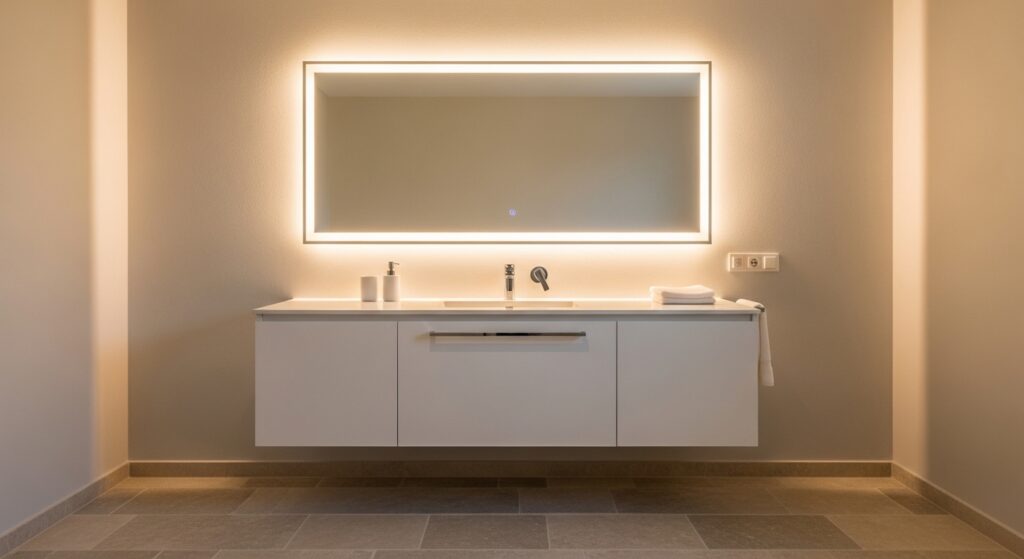 Soft lighting can completely change how your bathroom feels, and a backlit mirror does exactly that. Instead of harsh overhead lights, the glow creates a calm and flattering environment that feels instantly relaxing. I’ve noticed this makes early mornings and late-night routines much more pleasant, especially when you don’t want bright lights overwhelming your eyes.