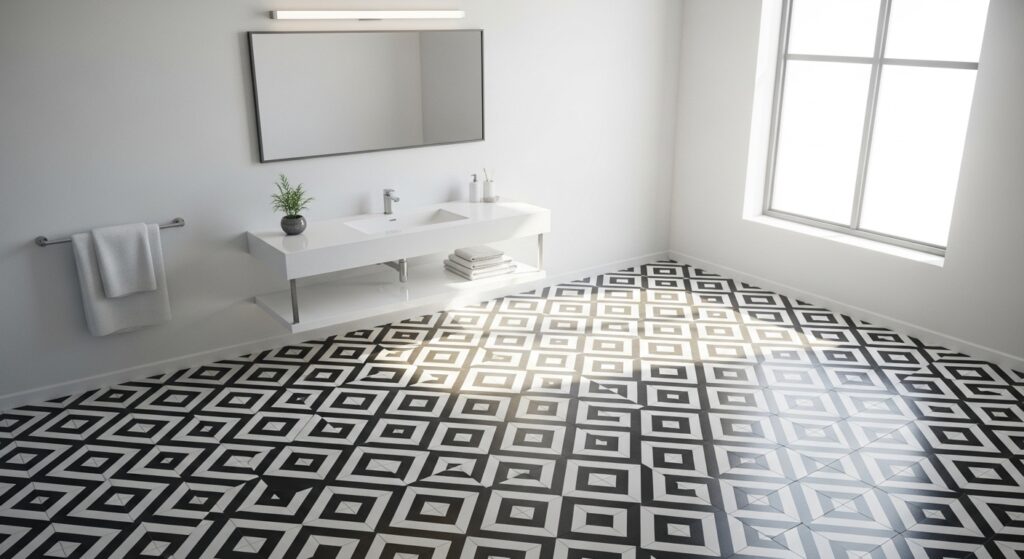 If your bathroom feels too plain, bold tile patterns can completely transform it. They bring energy and character into the space without needing extra decor. I’ve seen this work especially well when the rest of the bathroom stays simple, allowing the tiles to stand out naturally.
