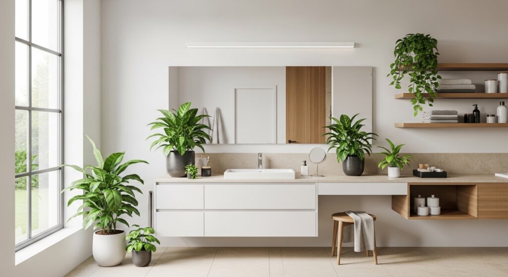 Plants also help balance out harder materials like tiles and metal fixtures. This mix of natural and modern elements creates a more comfortable and visually pleasing space. It’s a simple, affordable upgrade that makes your bathroom feel more alive and refreshing every day.