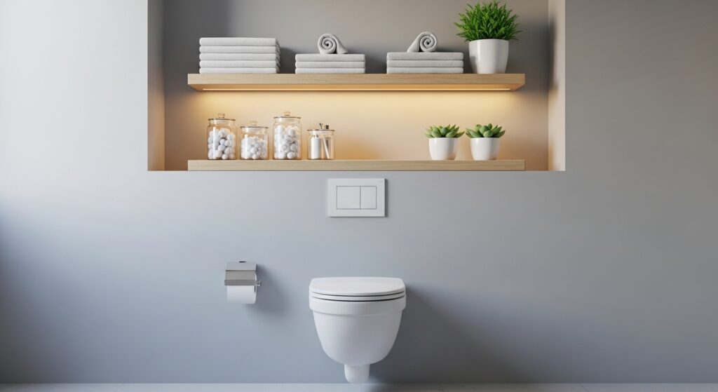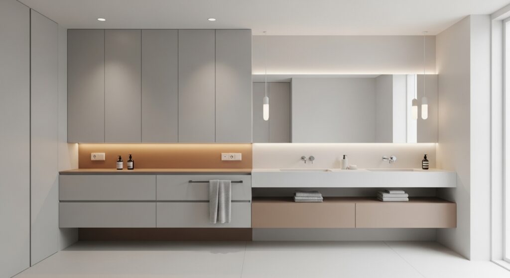 Hidden storage is the secret behind bathrooms that always look clean and organized. By tucking everything away behind seamless cabinets, the space feels calm and uncluttered. I’ve seen this make a huge difference in maintaining a tidy environment, especially in busy households.