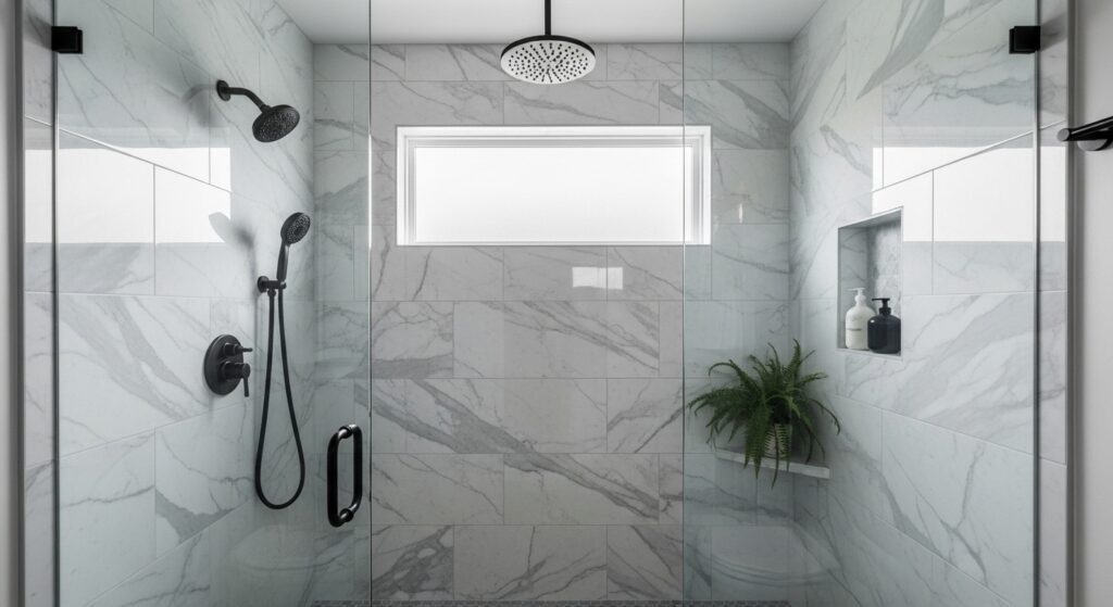 They’re also incredibly practical for everyday use. Less grout means less cleaning and fewer areas for dirt to build up. This combination of style and convenience makes them a popular choice in modern designs. The result is a bathroom that looks clean, polished, and easy to maintain.