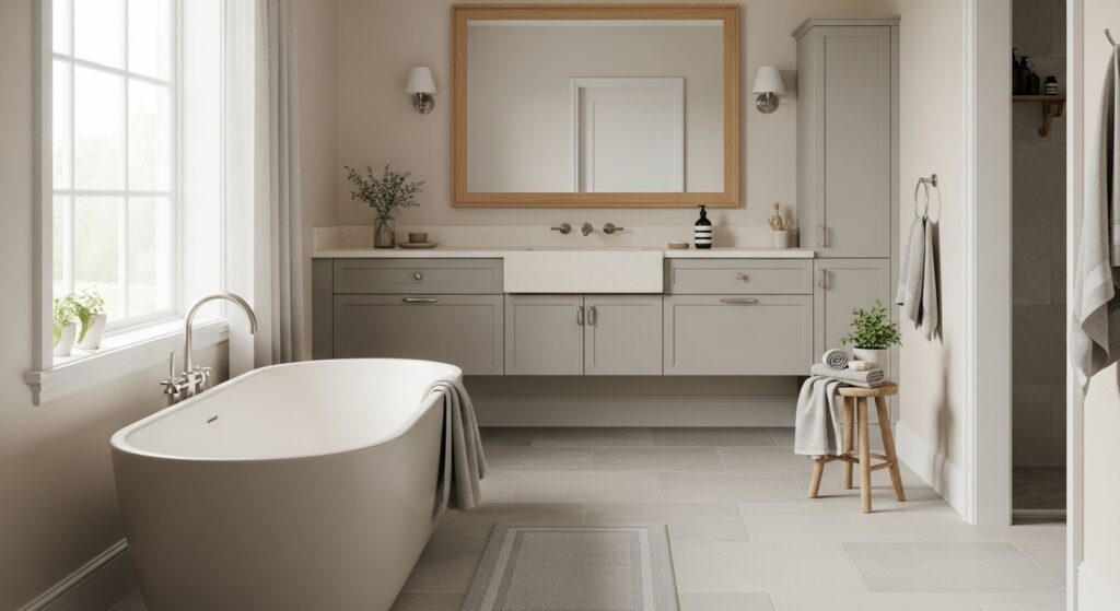What makes neutrals so powerful is their flexibility. You can easily switch accessories, add textures, or introduce small accents without redesigning the whole space. This adaptability is perfect for couples who want a shared aesthetic that evolves over time. The result is a bathroom that always feels fresh, clean, and effortlessly put together.