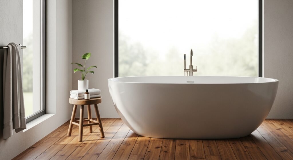 A freestanding bathtub instantly becomes the star of any bathroom. Its sculptural shape draws attention and creates a sense of calm that feels almost like a personal retreat. I’ve seen this setup turn ordinary bathrooms into spaces people genuinely look forward to using.