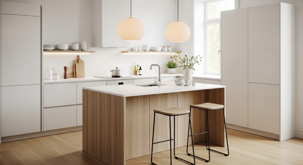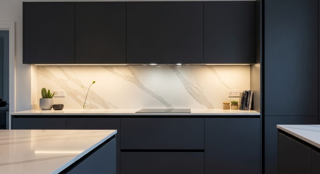 This design choice is all about simplicity and flow. Handleless cabinets remove unnecessary details, allowing the focus to remain on clean lines and smooth surfaces. I’ve noticed that this approach instantly makes a kitchen feel more modern and organized, even if the layout hasn’t changed. It creates a seamless look that feels calm and intentional.