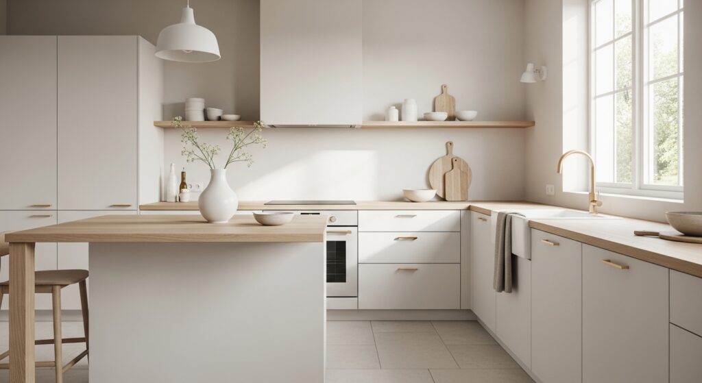 A neutral palette is one of the most reliable ways to create a kitchen that feels both fresh and timeless. Soft tones reflect light and make the space feel open, which is especially helpful in smaller areas. I’ve seen this approach work beautifully because it creates a clean base that never feels overwhelming or dated.