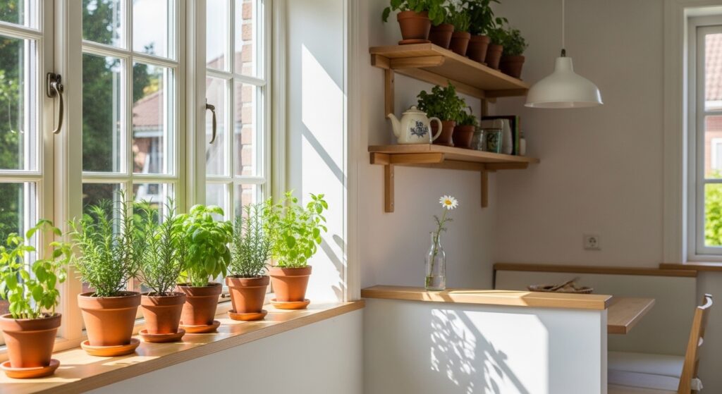 What makes this idea especially appealing is its practicality. You’re not just decorating—you’re growing ingredients you can actually use. This adds a functional layer to the design that feels rewarding over time. Even a few small pots can make a noticeable difference, turning your kitchen into a space that feels vibrant, personal, and full of life.