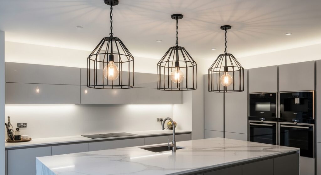 Lighting is one of the fastest ways to elevate a kitchen without major changes. A bold fixture can act as the centerpiece, pulling the entire design together in seconds. I’ve noticed that even a simple kitchen starts to feel high-end when statement lighting is added above an island or dining area. It creates a focal point that naturally grabs attention while also improving visibility where you need it most during cooking or gatherings.