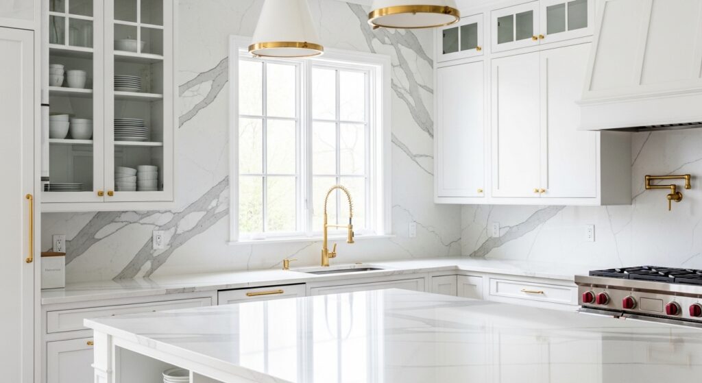 The real advantage lies in its ability to elevate even simple cabinetry. When paired with neutral tones, the natural veining becomes the focal point without overwhelming the space. That’s why many designers recommend this approach for timeless appeal. It’s also practical, as it protects walls while being easy to clean. Over time, this design choice continues to feel fresh, making your kitchen look thoughtfully designed and effortlessly sophisticated without constant updates or styling changes.